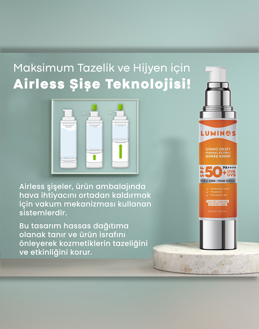 Doğal İçerik: Luminos Doğal Güneş Kremi, kimyasal filtreler yerine mineral bazlı içerikler kullanır. Bu, cildin hassasiyetine ve çevresel etkilere karşı duyarlı olan kişiler için daha uygundur.​